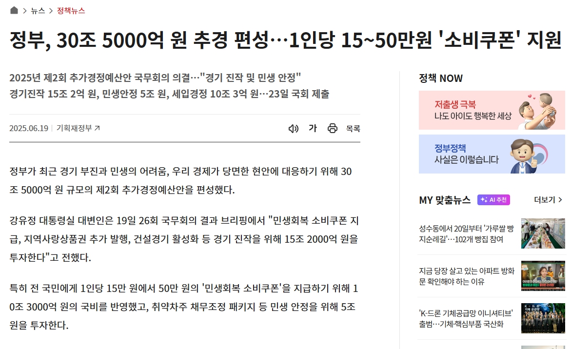 2. 2025년 제2차 추경으로 확정된 25만원 지원금 소비쿠폰 예산